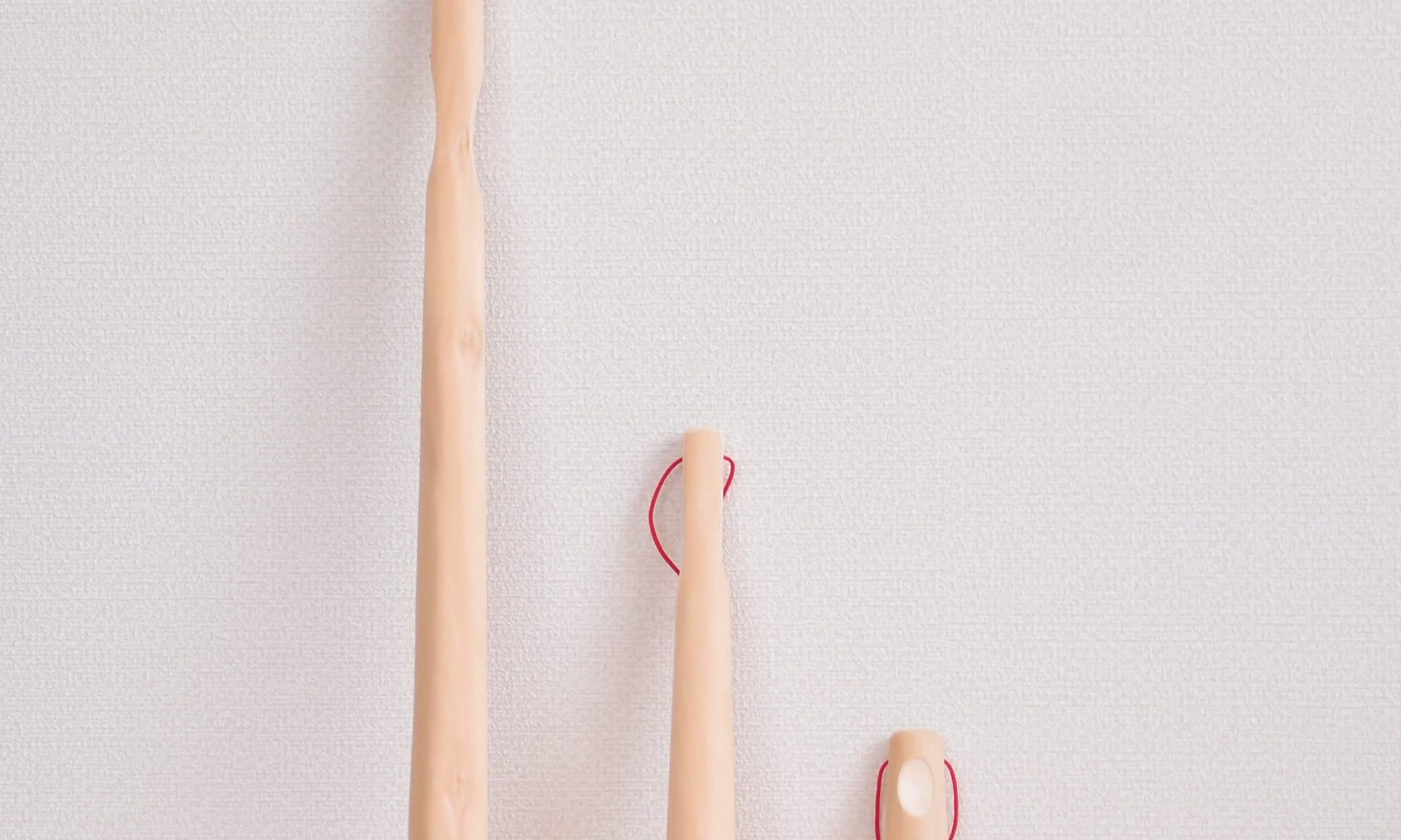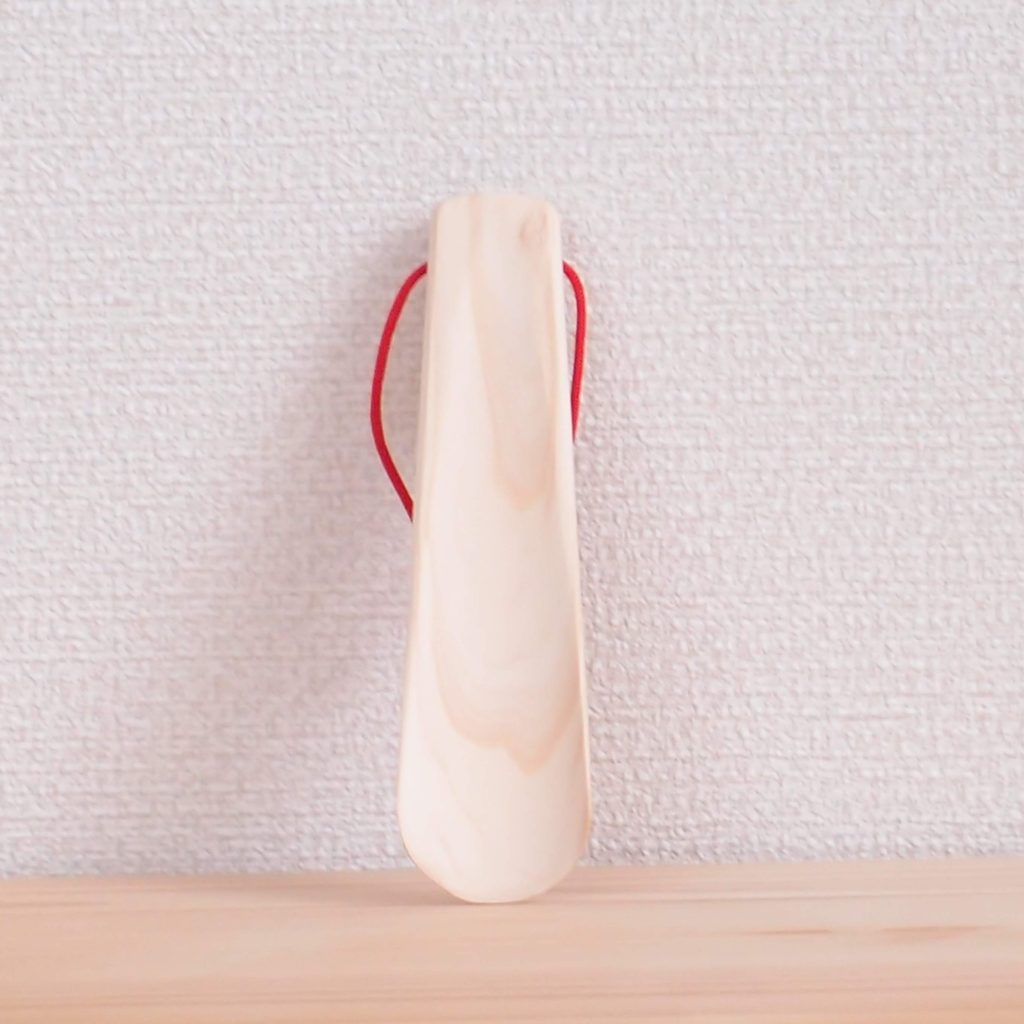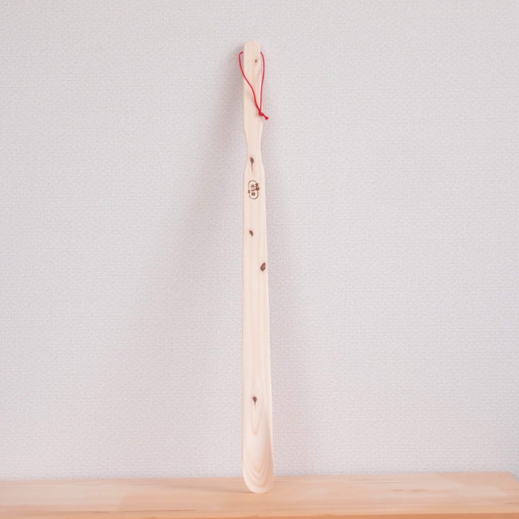 それぞれの靴べらには持ちやすいようにくぼみをつけて、また紐を通してフックなどにかけれるようにしています。